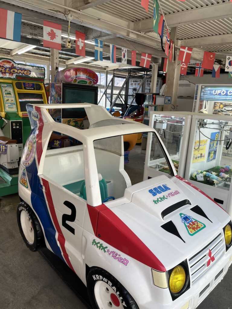 あの頃にしかない字体。おもむき。ゲーセンには万国旗。